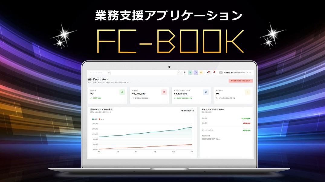 業務支援アプリケーション:FC-BOOKは、月額5,000円でご利用いただけます。